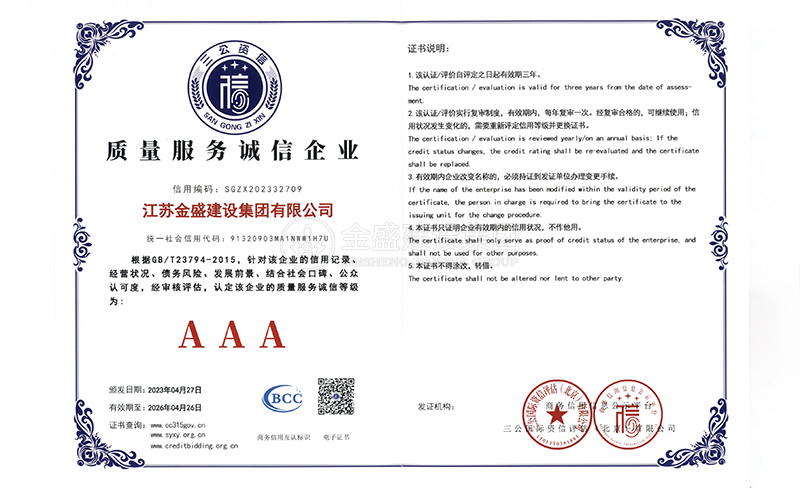 • 2007年江蘇省質(zhì)量信得過(guò)安全穩(wěn)定施工企業(yè)